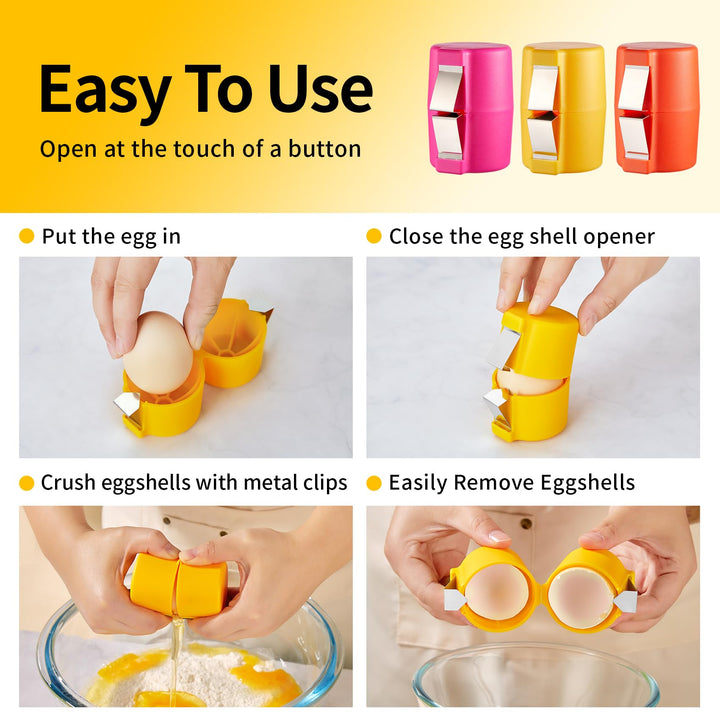 Simple & Quick Egg-cracking: It is ergonomic, featured by the cube appearance and oval groove, and the egg opener can stably contain the egg, so the egg is not easy to fall, the shell pieces will not fall when the egg is opened. And will not damage the yolk, let alone dirty hands.