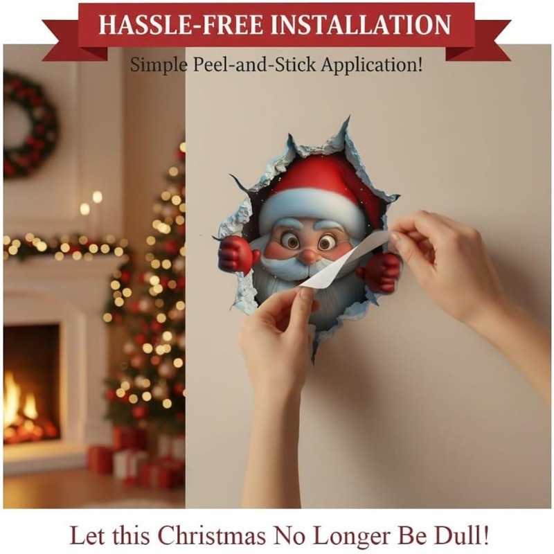 Bring your walls to life with a playful 3D Santa bursting through the surface. These Christmas creative wall stickers feature vivid colors and a fun torn-wall effect that looks like Santa is peeking into your home. They instantly turn plain walls, doors or windows into a joyful holiday scene that kids and guests will never forget.