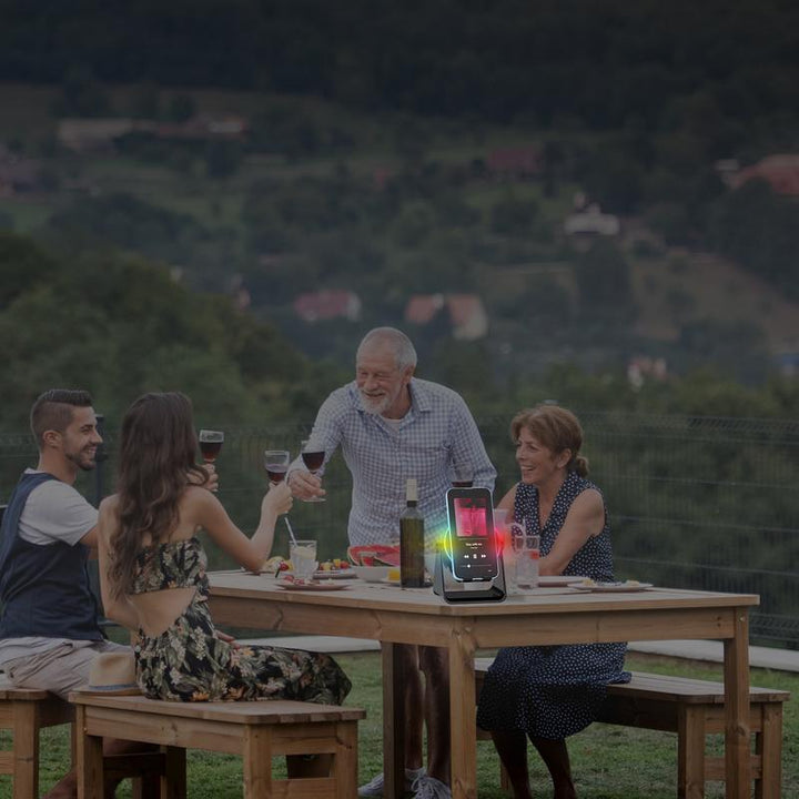 One sleek gadget = induction speaker + Bluetooth speaker + adjustable stand + RGB mood light. Slip in your phone to amplify instantly (no pairing) or switch to BT 5.3 for cable-free stereo anywhere.