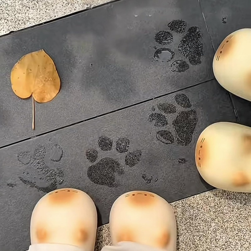 The unique cat-paw outsole leaves paw-shaped prints on wet surfaces — playful steps that show your personality every rainy day walk to the kitchen or bath.
