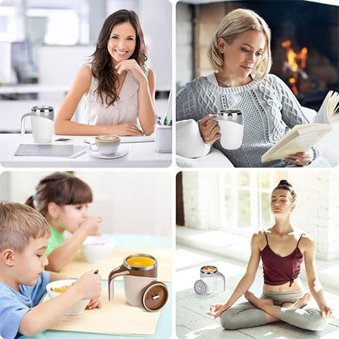 Self Stirring Mug is great for coffee, hot chocolate, milk, protein shakes and many other lightly blended beverages that can be whipped. Itâs also the perfect gift for office, travel, Fatherâs Day, Motherâs Day, Christmas, Thanksgiving, and more