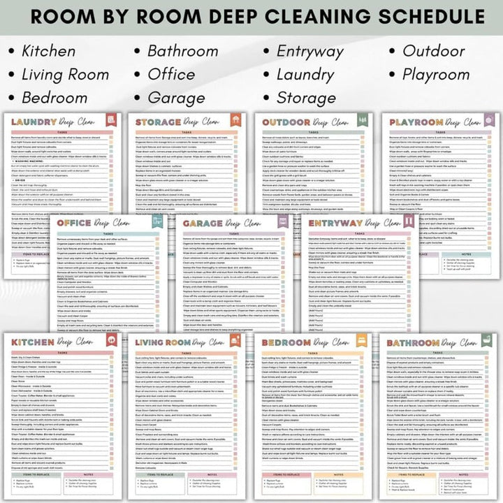 Includes over 10 guided checklists for every space in your home—Kitchen, Bedroom, Bathroom, Office, Garage, Laundry Room, Entryway, and more. Tackle each area with clear, step-by-step breakdowns.