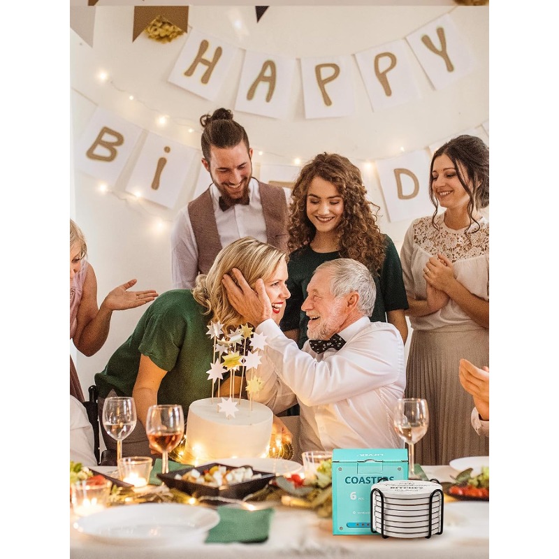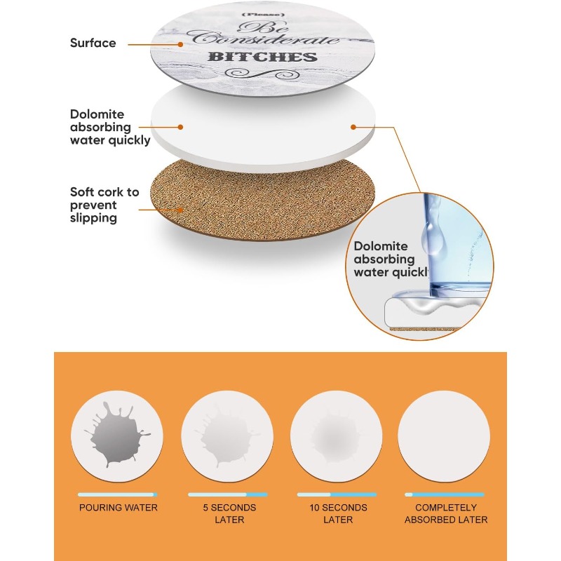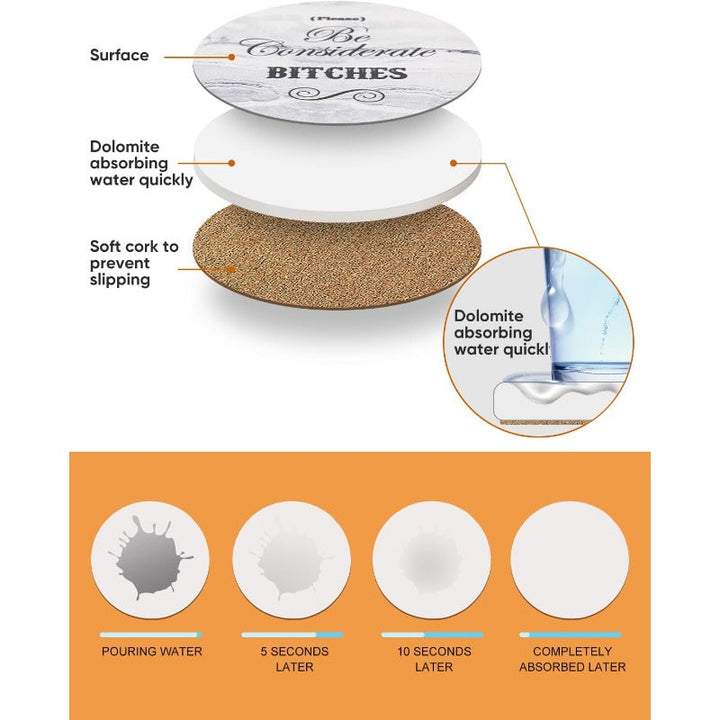 Made from high-quality dolomite ceramic, these coasters absorb condensation in seconds — much faster than sandstone or silicone coasters. Say goodbye to sticky puddles and water rings on your furniture!