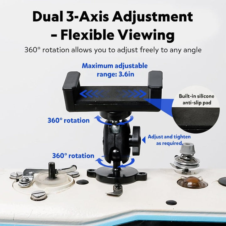 Snap it onto your sewing machine, machine tools, or any metal surface for steady, hands-free viewing. Dual 3-axis joints with full 360° rotation let you frame the perfect angle in seconds.