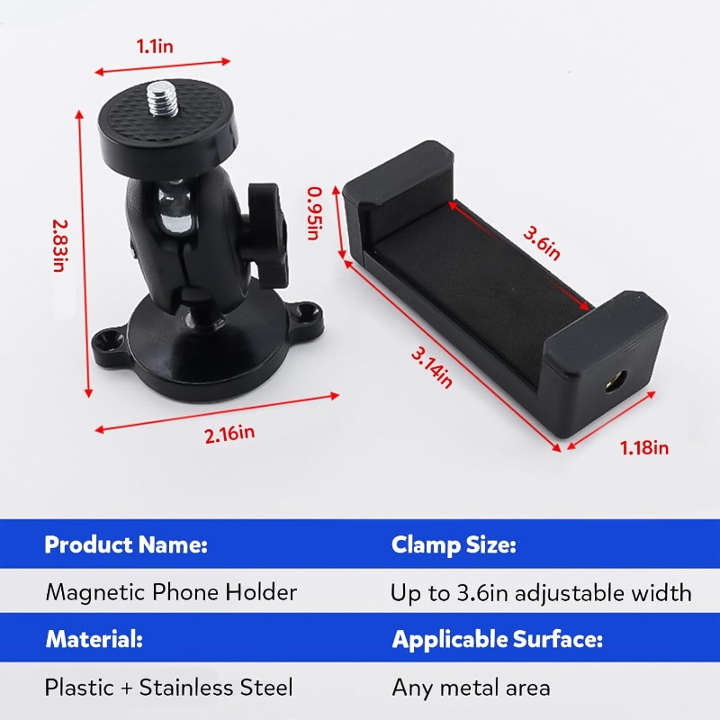 The magnetic base plus knob-lock joints provide stable, shake-resistant support.