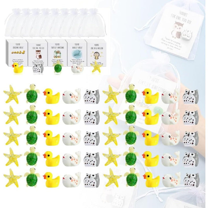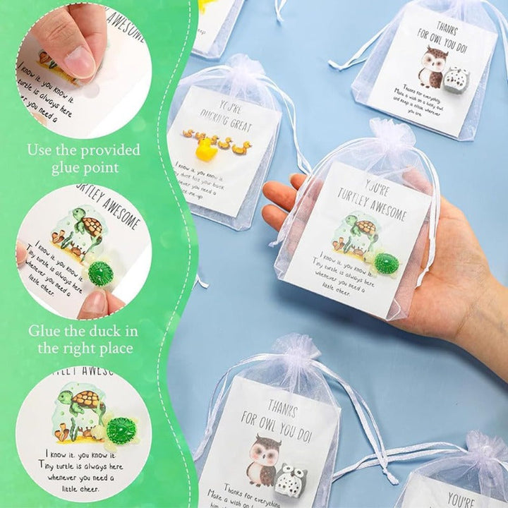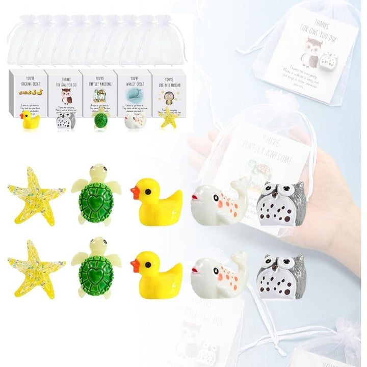Each set includes a mix of charming mini figurines—duck, turtle, whale, owl, and star—crafted to deliver joy, smiles, and a little encouragement with every gift.