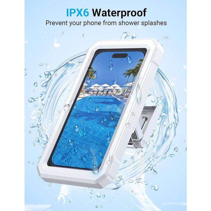 The holder rotates a full 360°, letting you switch freely between portrait and landscape viewing. Perfect for sitting back in the tub or standing under the shower with the best angle every time.